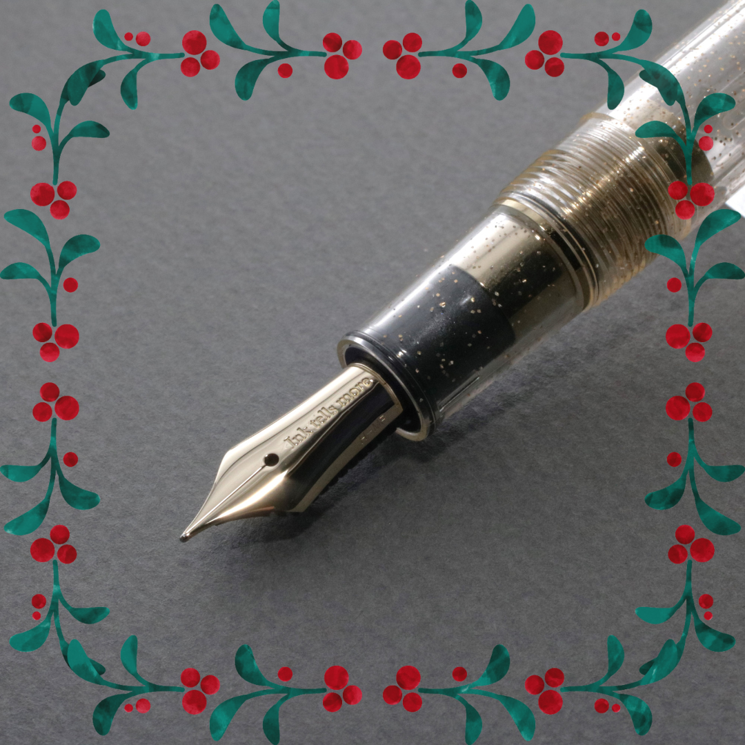 The 14k gold nib is a engraved with our motto, “Ink tells more”