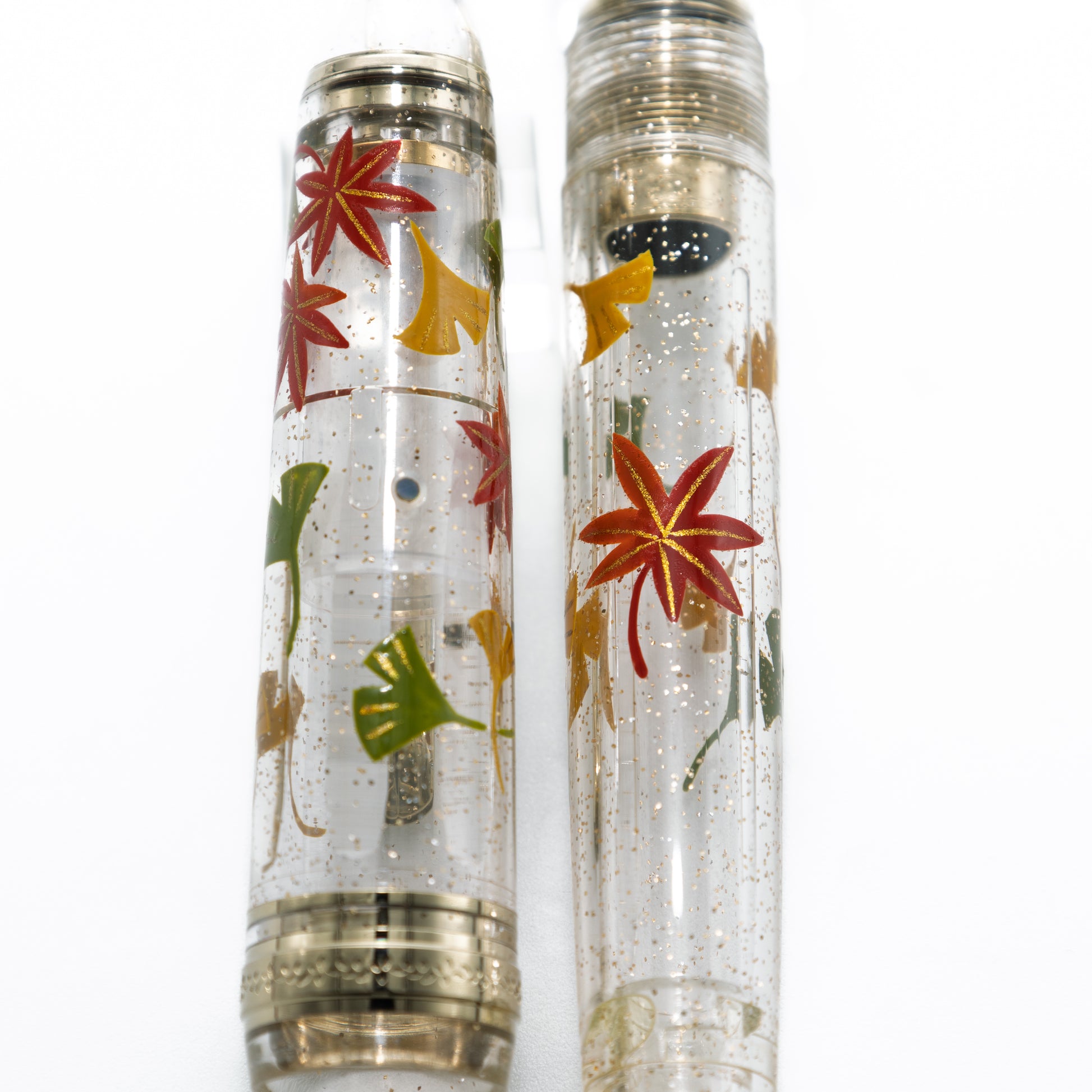 With brilliant red maple leaves and yellow ginkgo, beautifully enhanced by shimmering gold glitter, it presents an exceptionally stunning appearance.